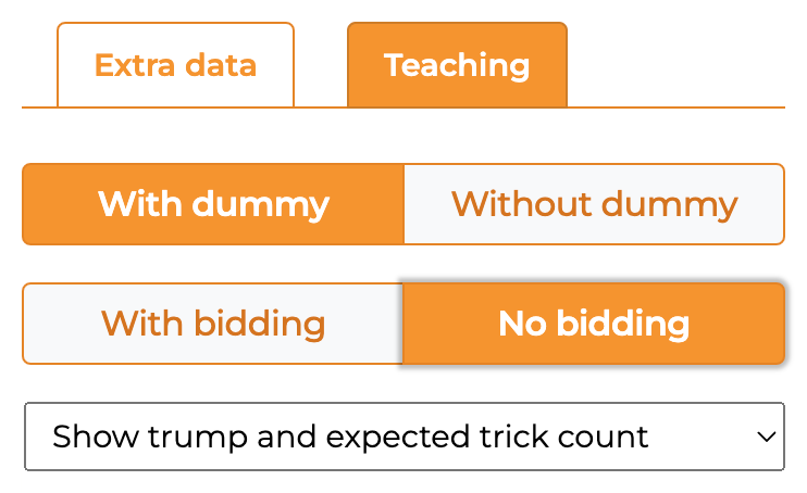 — “Display only the auctions”, where the auctions that the teacher filled will be displayed without interaction, after that the student can directly play the deal.