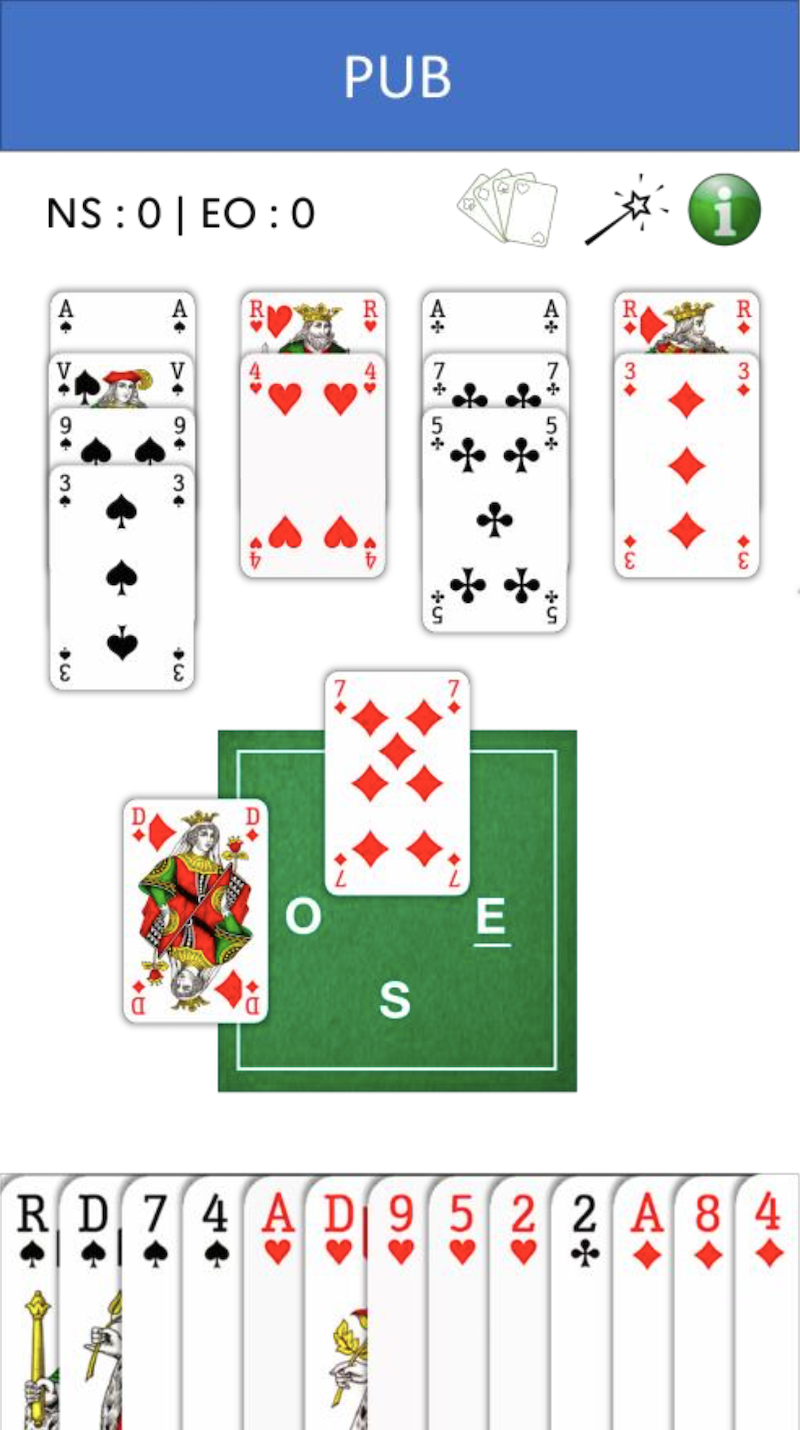 Player seats SOUTH, Player seats EAST or Player seats WEST.
