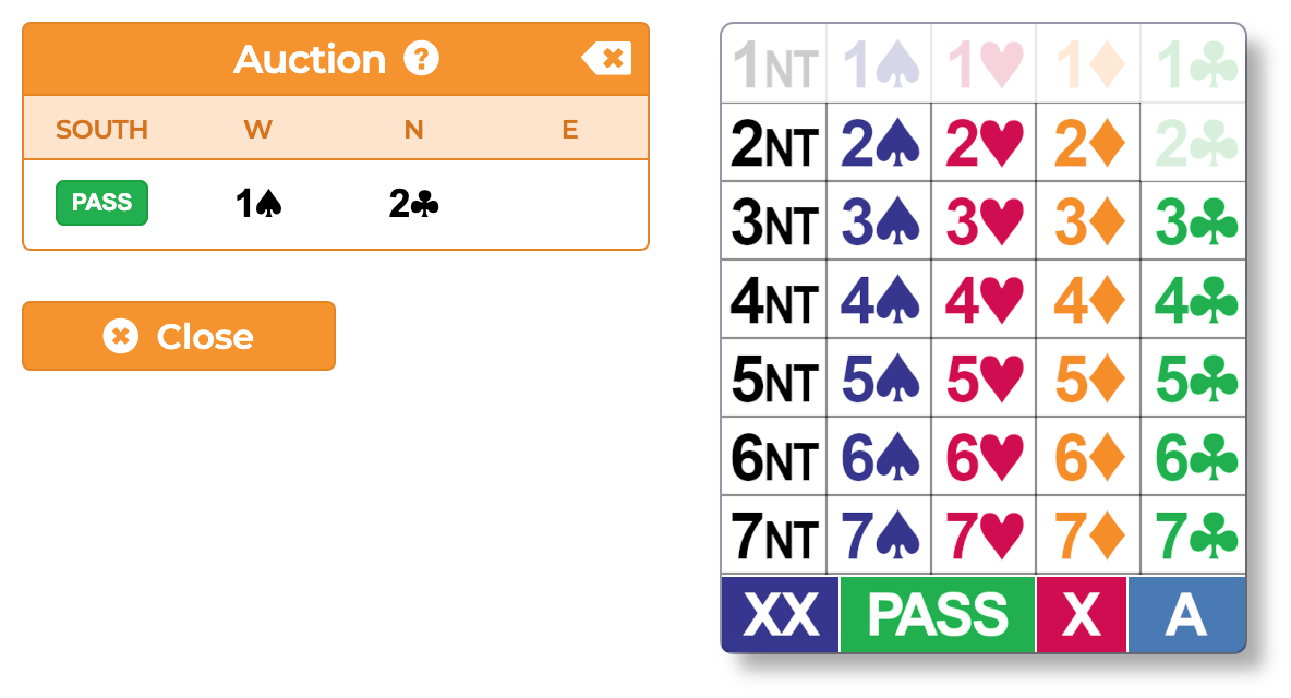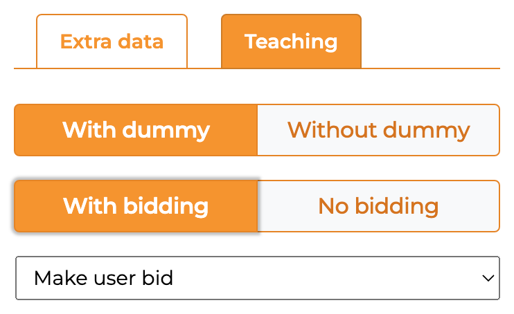 — “Display only the auctions”, where the auctions that the teacher filled will be displayed without interaction, after that the student can directly play the deal.